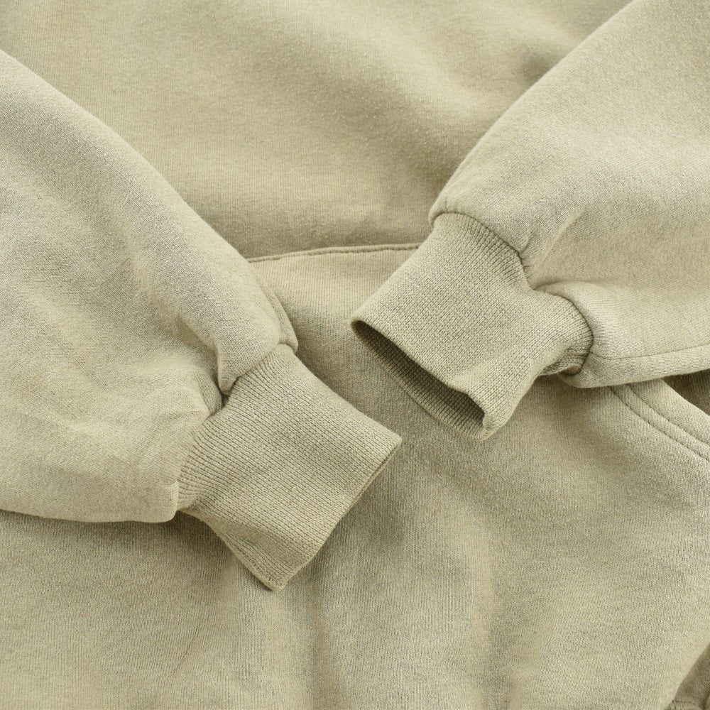 50/50のコットンポリ混紡ならではのガシッとした肉感と、育った裏起毛の柔らかさが共存しています。