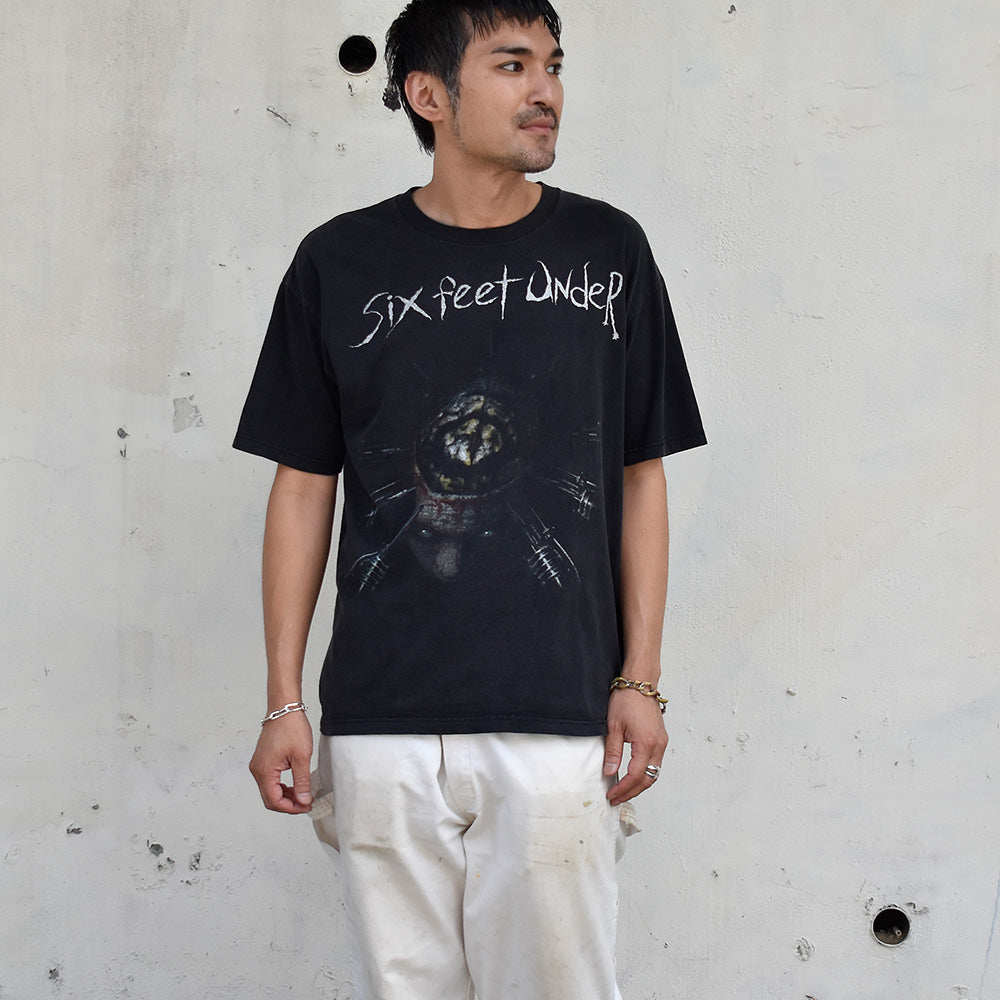 note...初代カンニバル・コープスのボーカリスト、クリス・バーンズを中心に結成されたアメリカのデスメタルバンド、Six Feet Under。99年リリースの名作アルバム“Maximum Violence”Tシャツ。フロントにジャケットで使用されたグラフィック。バックには大きく入るロゴプリント。両面ともにバンドの世界観を表現した迫力のある1枚。デスメタルファン必見のSix Feet Under Tシャツです。
