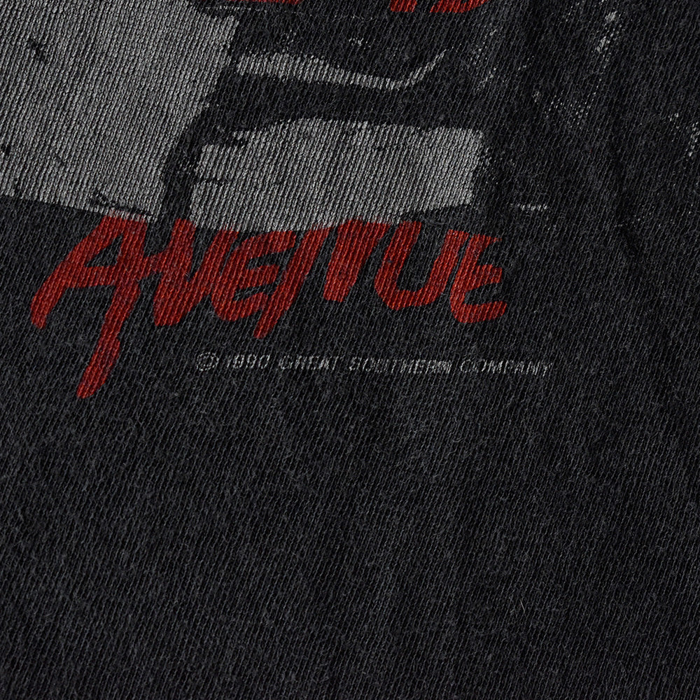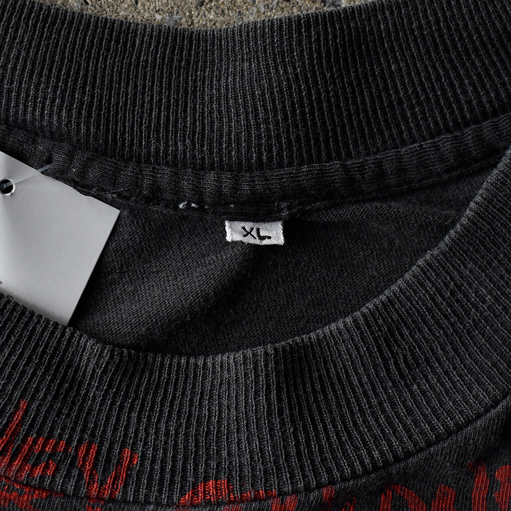 note...LAメタルバンド、人気のSKID ROW。90年に行われた"I SURVIVED SKID ROW LIVE"Tシャツ。フロントに迫力のあるメンバーグラフィック。襟リブまで乗るプリントも贅沢な1枚。バックにはライブタイトルがデザインされています。サイズはXL表記。ボディはユーロ製。90年コピーライト入り。おさえておきたいRock Tシャツ、スキッド・ロウです。