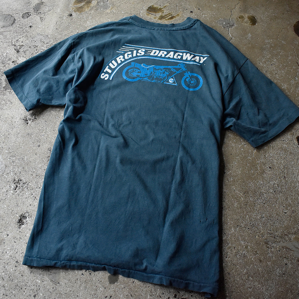 note...世界最大級のモーターサイクルラリー、Sturgis。94年開催のSturgis Dragway Tシャツ。フロントに迫力のあるバイクプリント。94年コピーライト入り。バイカーテイスト、アメリカンカルチャーを感じさる1枚です。
