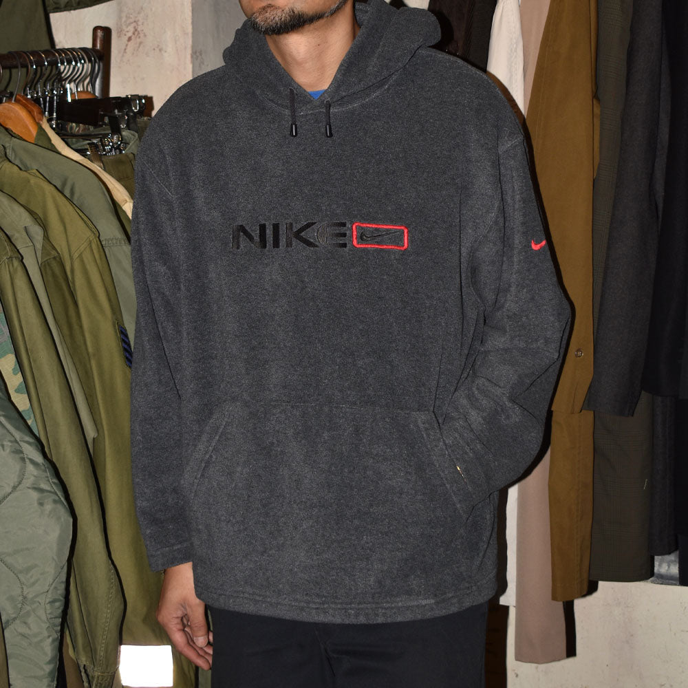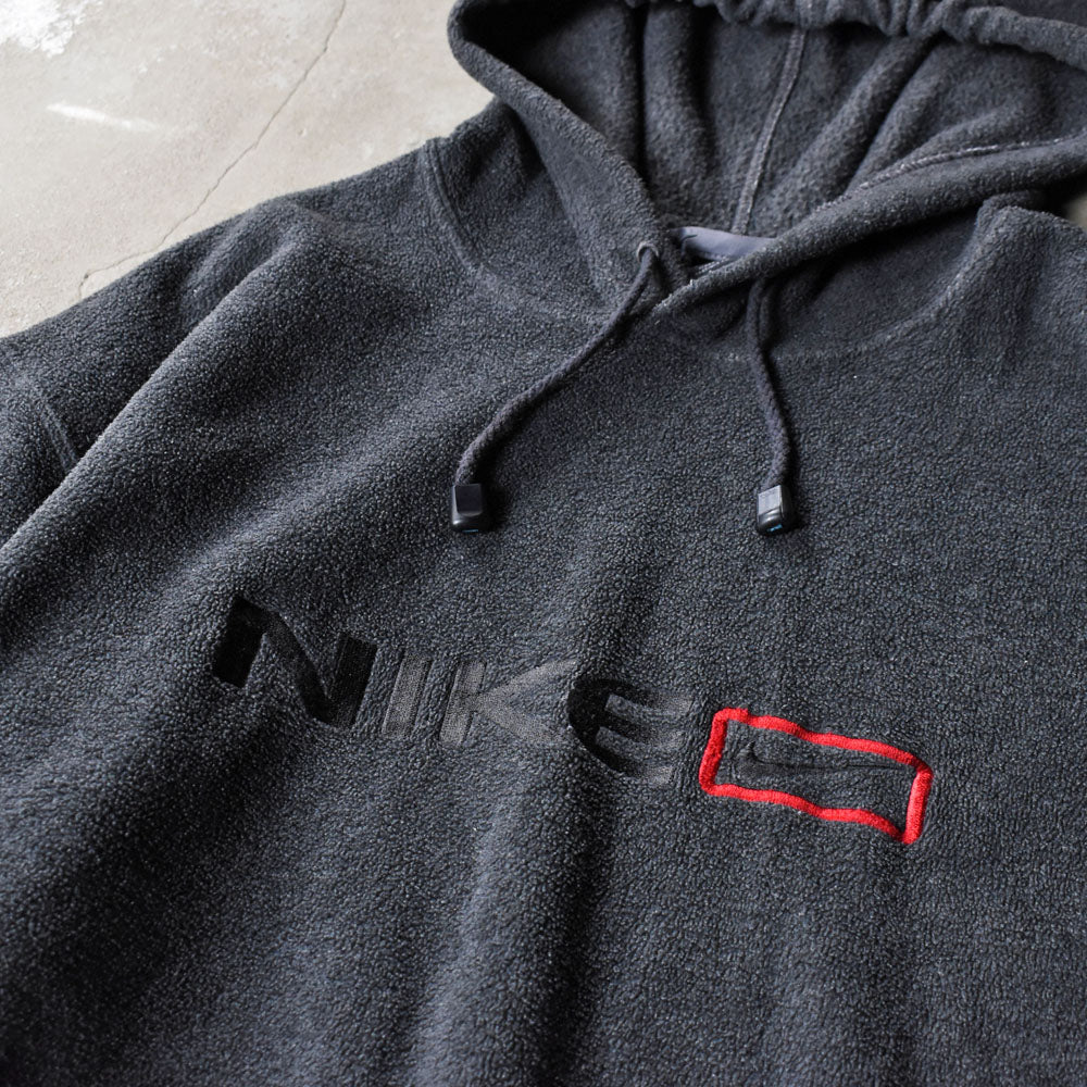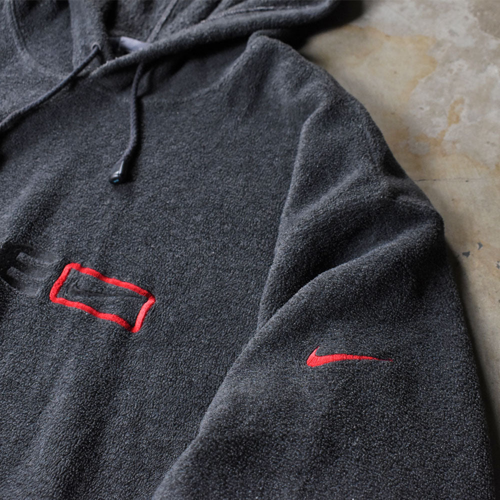 ナイキの象徴であるスウッシュをあえて袖に外し、赤いステッチで囲ったデザインが、90年代らしい実験精神を感じさせる一着です。