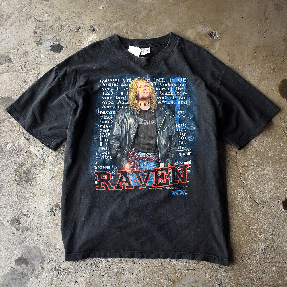 note...メジャープロレス、WCWの人気レスラー、レイヴェンTシャツ。フロントにシブいレイヴェンとメッセージプリント。98年WCWコピーライト入り。サイズはXL表記。海外でも評価の高いヴィンテージプロレスTシャツ。その中でも特に出回る事のないレイヴェンです!