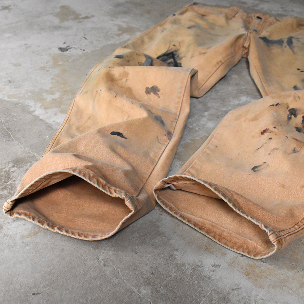 note...アメリカの老舗ワークブランド、Dickiesのダックパンツ。定番ブラウンカラーに、全体に飛び散ったペイント汚れがグッドアクセント。アーティストのワークパンツを思わせるリアルな加工感とフェードが魅力です。スタイリングのハズしやDIY感のある主役ボトムとしておすすめ!ヴィンテージやストリートライクなコーデにぜひ。