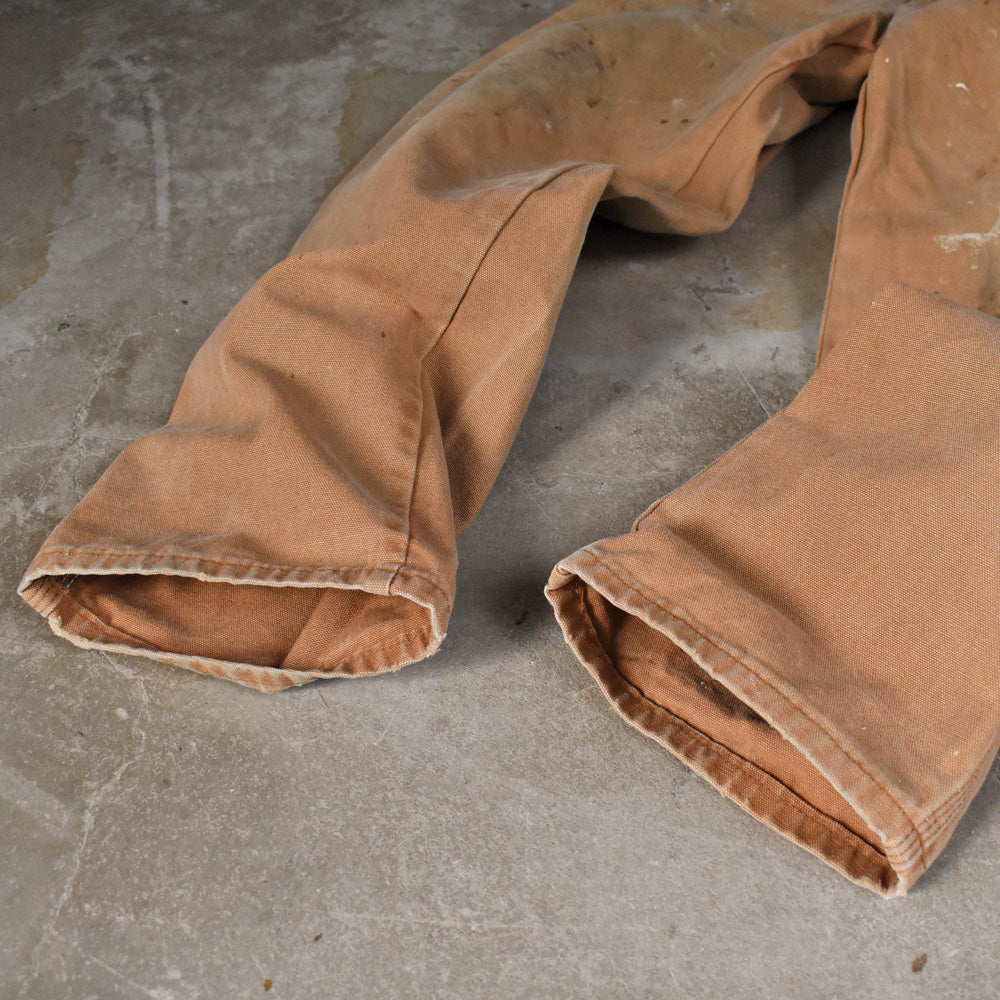 note...アメリカンワークウェアを代表する、Dickiesのダックワークパンツ。タフなコットンダック生地を使用し、使い込まれた表情とリアルなペンキ跡が加わることで、唯一無二の存在感を放っています。肉厚な素材は長年のハードワークに耐えてきた証であり、擦れや汚れも含めてワークパンツならではの魅力に仕上がっています。