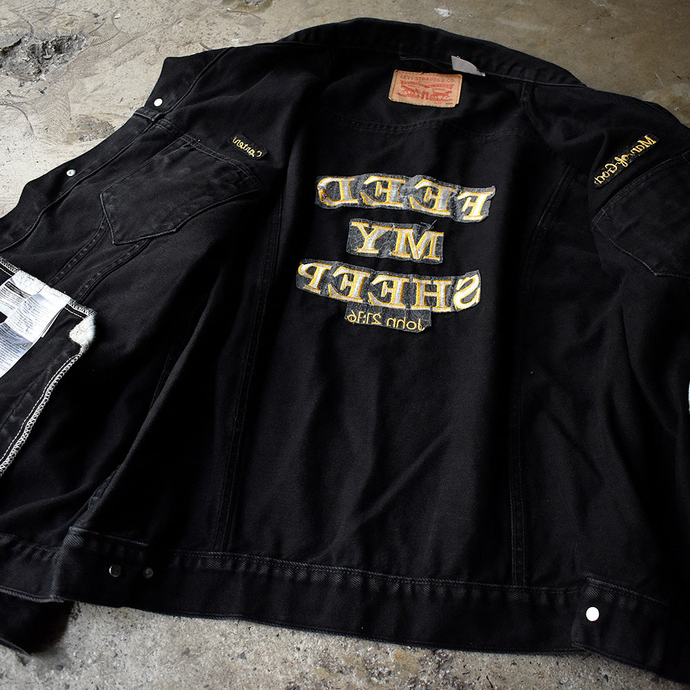 ブラックボディに映えるゴールド刺繍は視覚的なインパクトも強く、デニムジャケットという普遍的なフォルムに新たな物語を与えています。