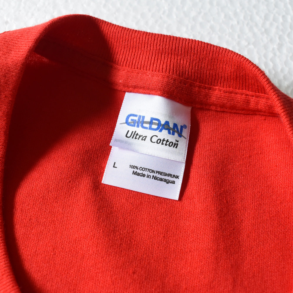 note...インディペンデント・レーベル/ディストロ、Malicious Intent ProductionsのTシャツ。デスメタル、グラインドコア、ノイズ、ハードコアといったアンダーグラウンド・シーンを支え、少数生産の音源やジン、Tシャツ、パッチを手掛けてきた存在です。本作は赤ボディに白プリントで、ガスマスクを装着した人物を描いた混沌と攻撃性に満ちたアートワークを採用。上部にはレーベル名、下部には「DEATH MERCH」のロゴが配され、シーン特有のDIY精神と過激な世界観を凝縮しています。GILDAN Ultra Cottonボディ、表記サイズはL。メジャー流通に乗らないコアなレーベルの一枚は、アンダーグラウンド音楽とヴィンテージロックTを推す当店でも特に注目してほしい希少アイテムです。