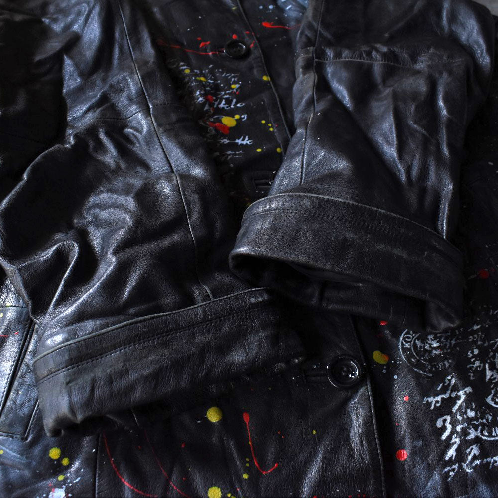 革の厚みや少しだけ乾いた質感が、ペイントの荒々しさとうまく噛み合って、ただのカスタムでは終わっていない。