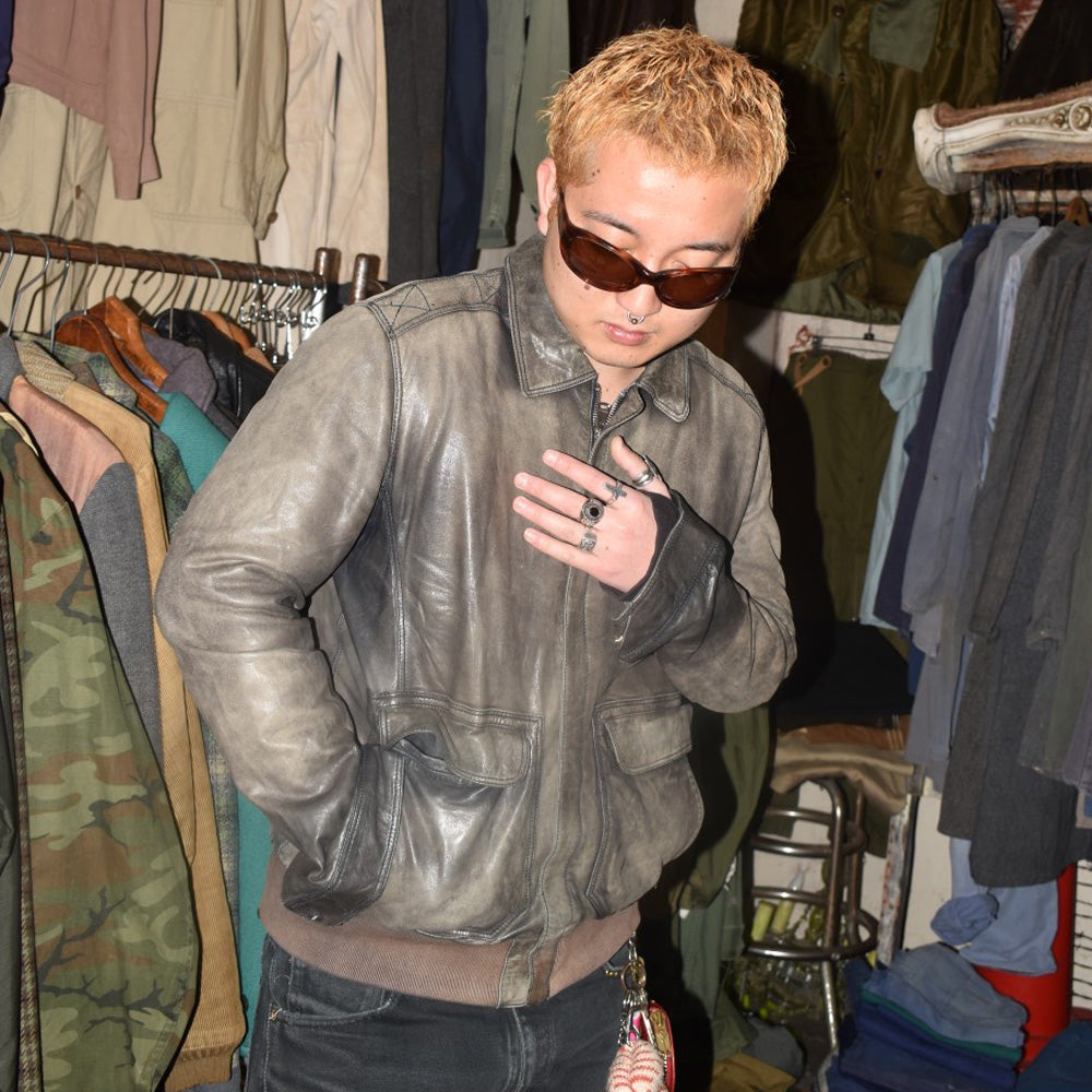 元の色彩を忘れさせるほどに枯れ果てたこの鬼フェードが、上品なレザーにストリートの無骨さと毒を注入しています。