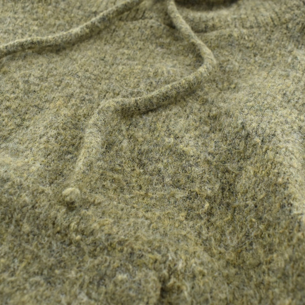 そこに、ブークレ糸のやわらかくふっくらとした質感が重なって、このニットのかわいさは最大値に達しています。