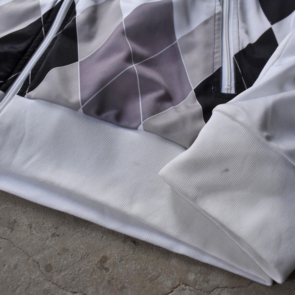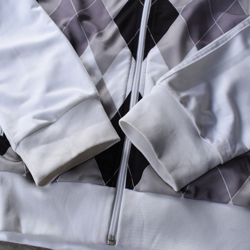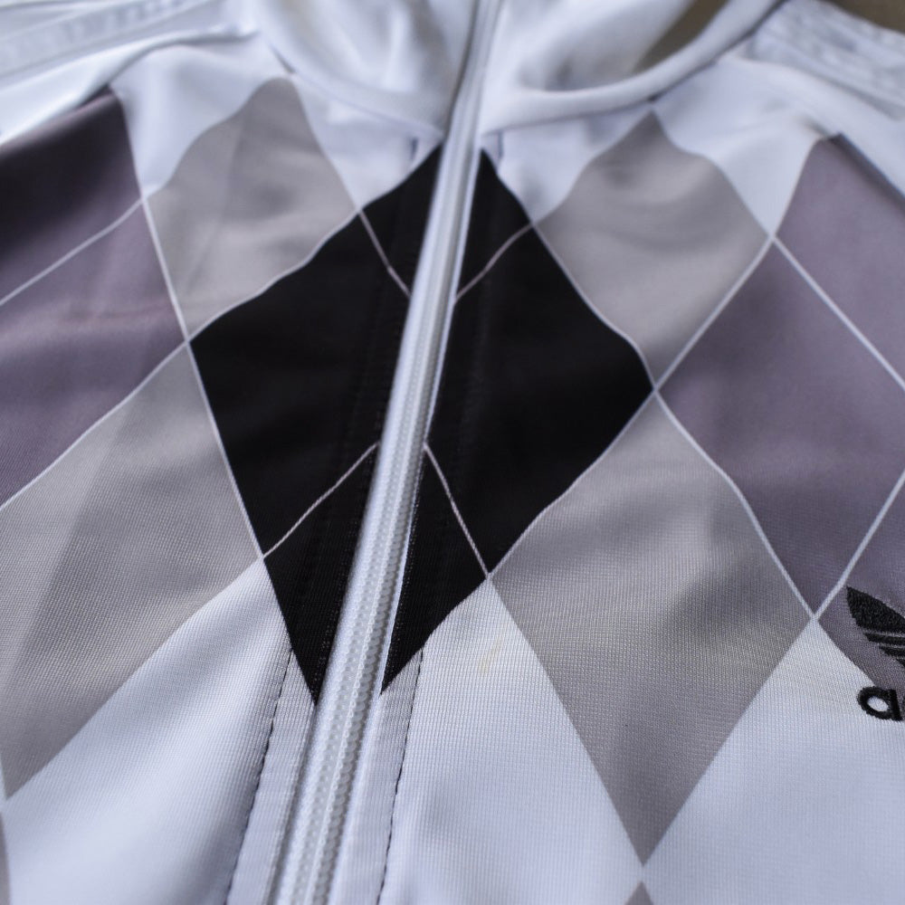 note...グレートーンのアーガイルを大胆に配した、アディダスのトラックジャケット。