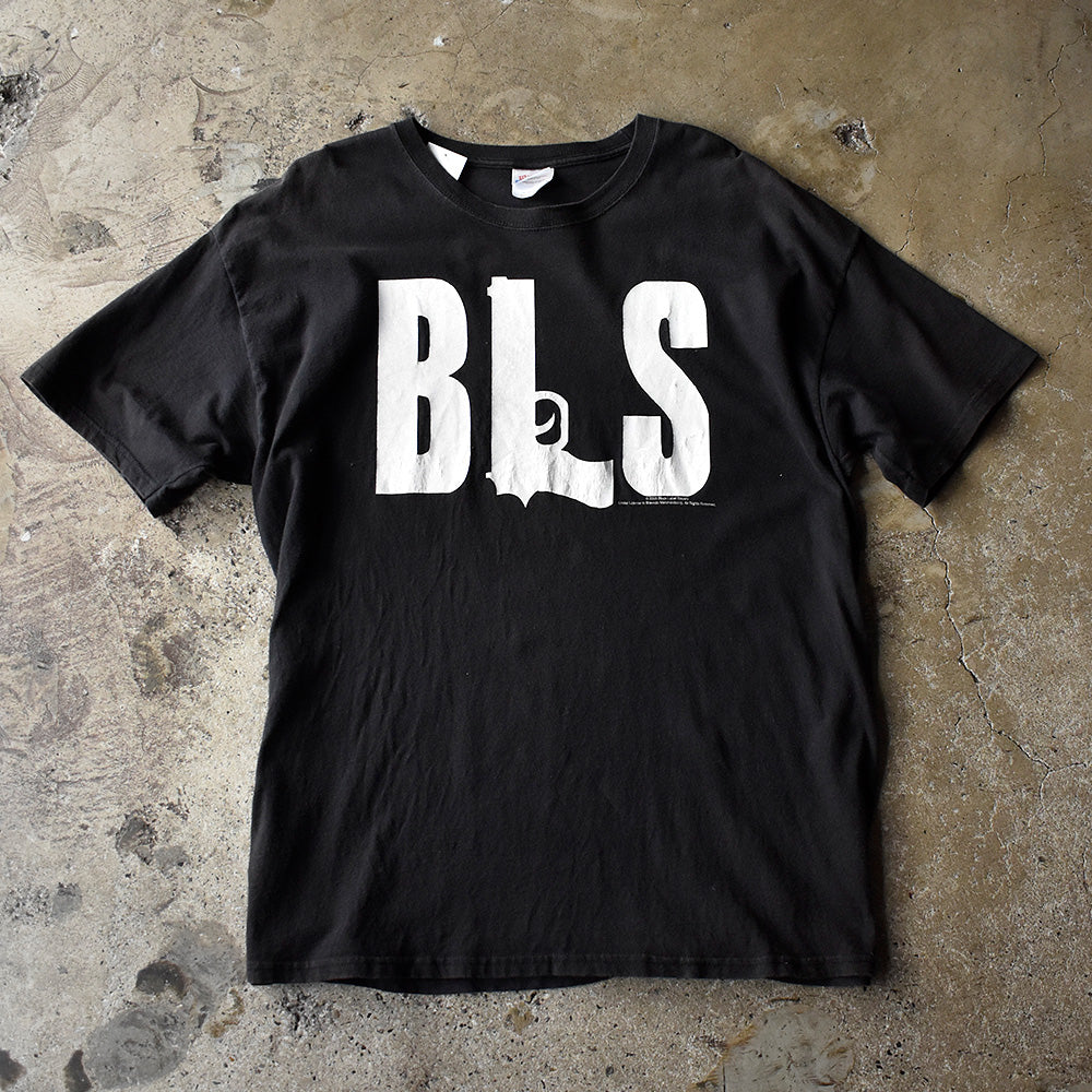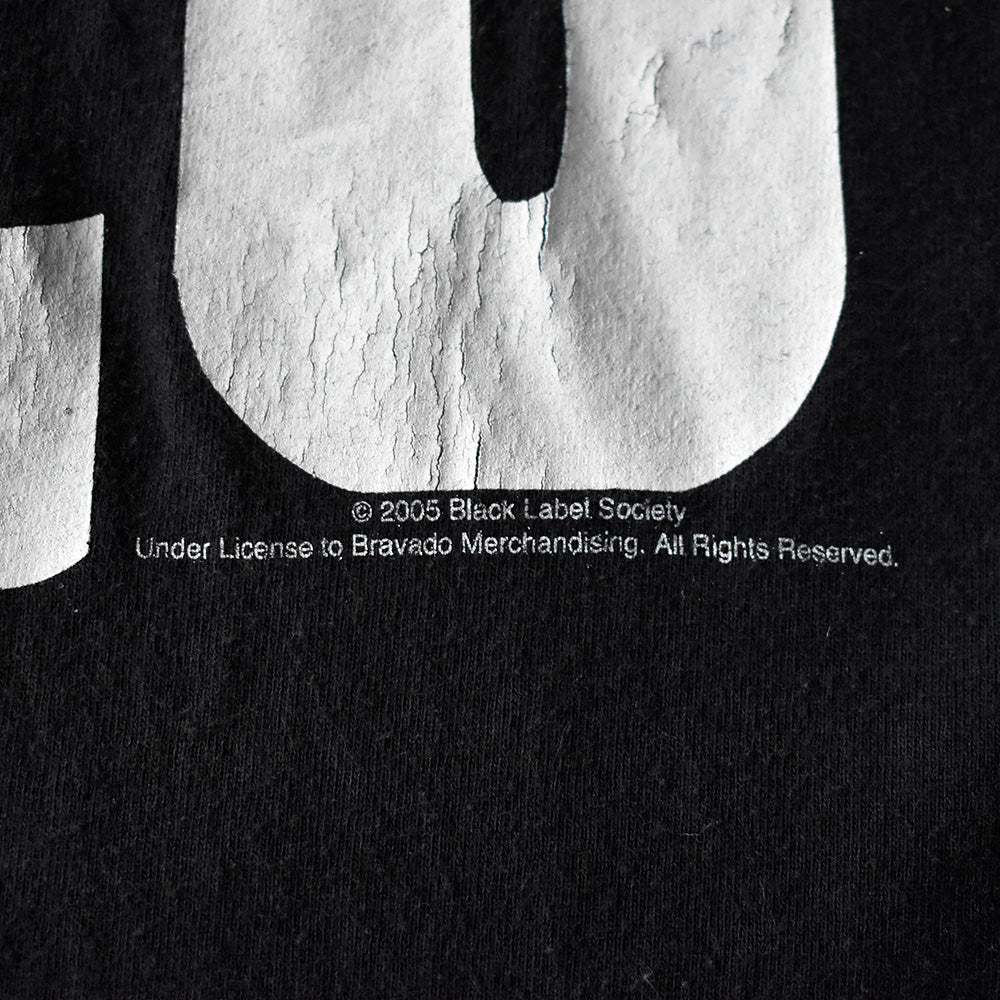 note...オジー・オズボーンのギタリストとして知られるザック・ワイルドが中心となり結成された、USヘヴィメタルバンドBlack Label Society。05年リリースEP“In This River“Tシャツ。フロントにピストルをモチーフとしたBLSのロゴ。バックにはジャケットでも使用されたスカル×クロスグラフィックとバンドの象徴的スローガンStrength. Determination. Merciless. Forever.のプリント。黒×白を基調としたビジュアルがBLSらしい世界観。05年コピーライト入り。スタッフ・ハヤト君もイチオシのBlack Label Society Tシャツです!