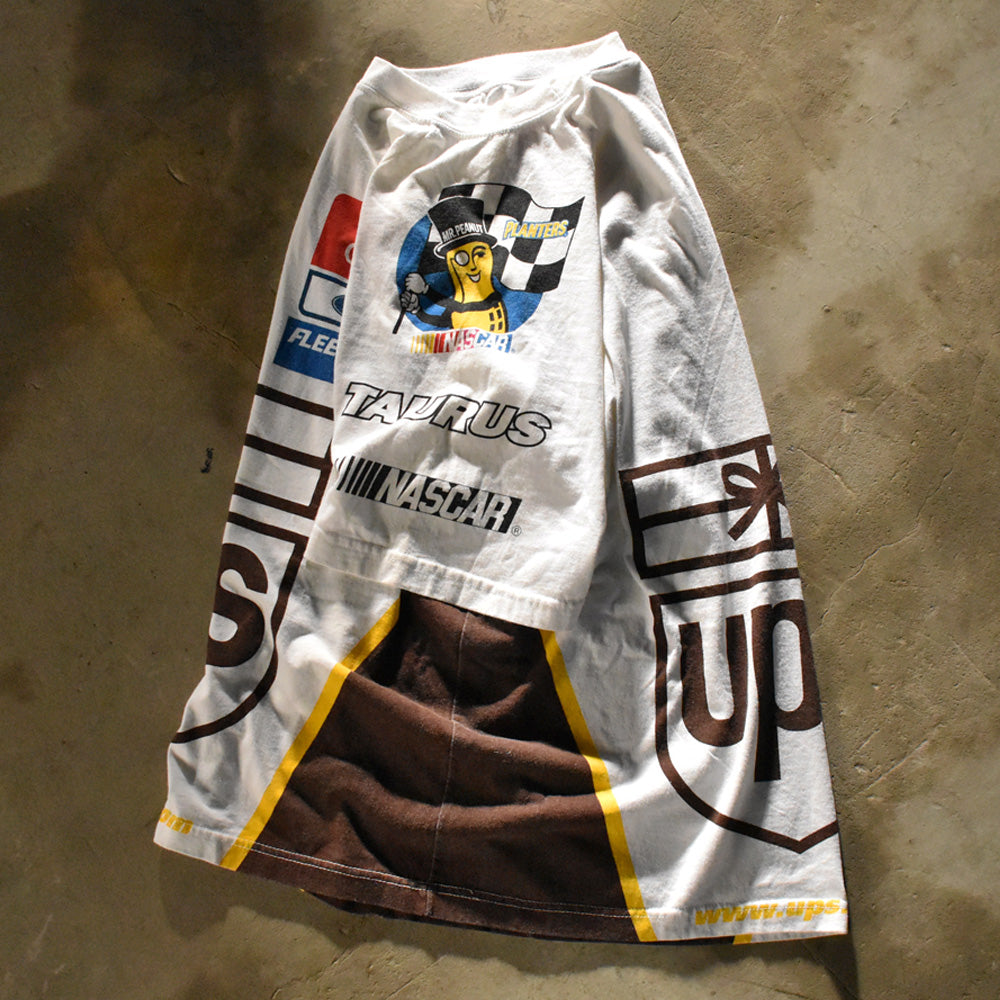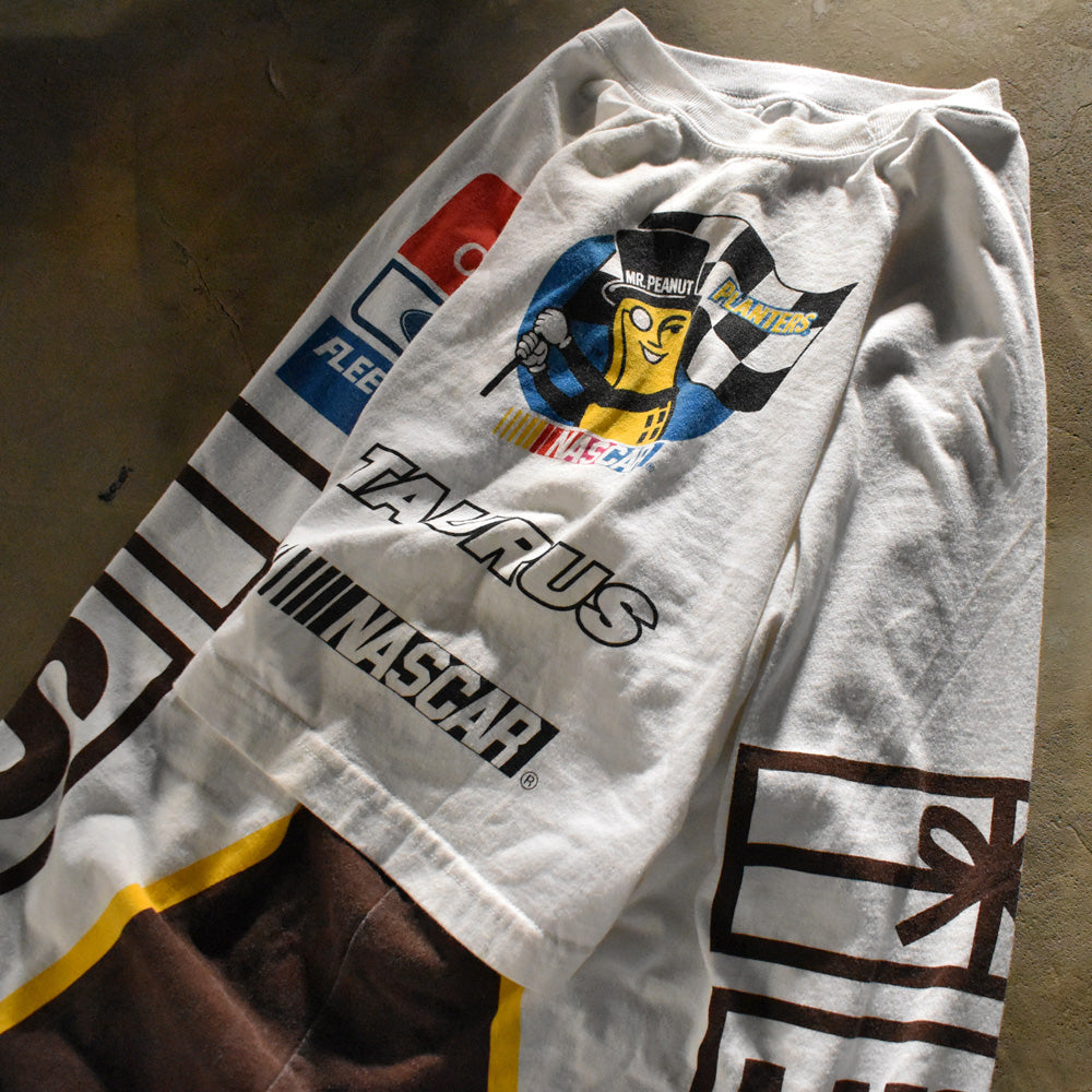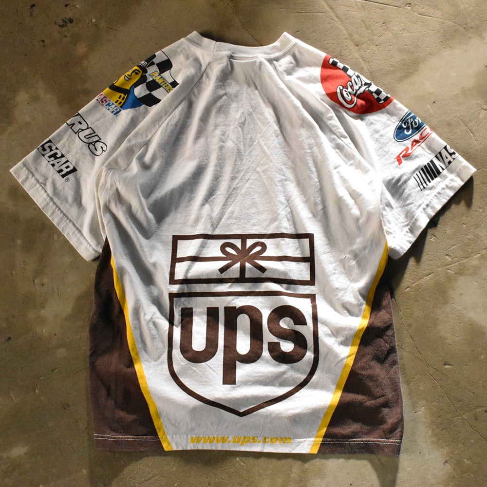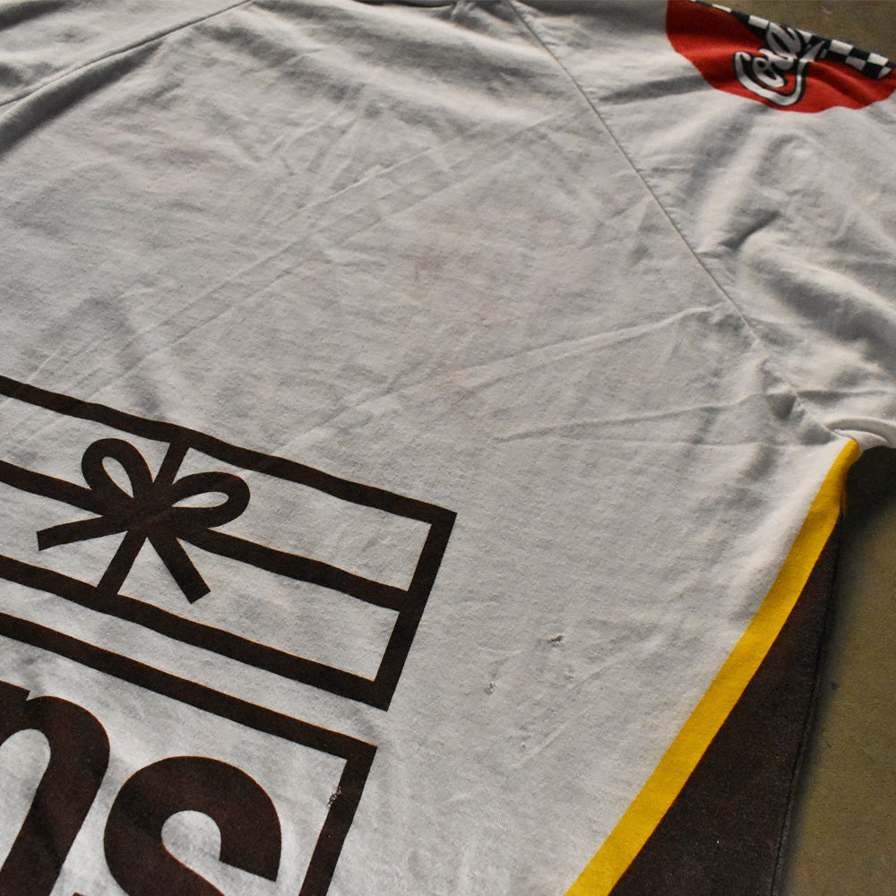 note...スポンサーロゴが全面に入った豪華レーシングT。コカ・コーラ、ミスター・ピーナッツ、UPSなどキャッチ―なロゴがたくさん! 360°どこ見てもCOOL。海外でも評価の高いレーシングTシャツ。これからの季節にオススメです。