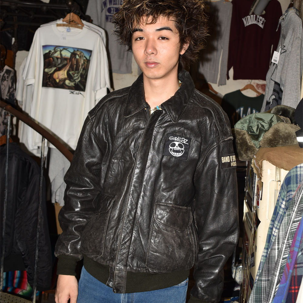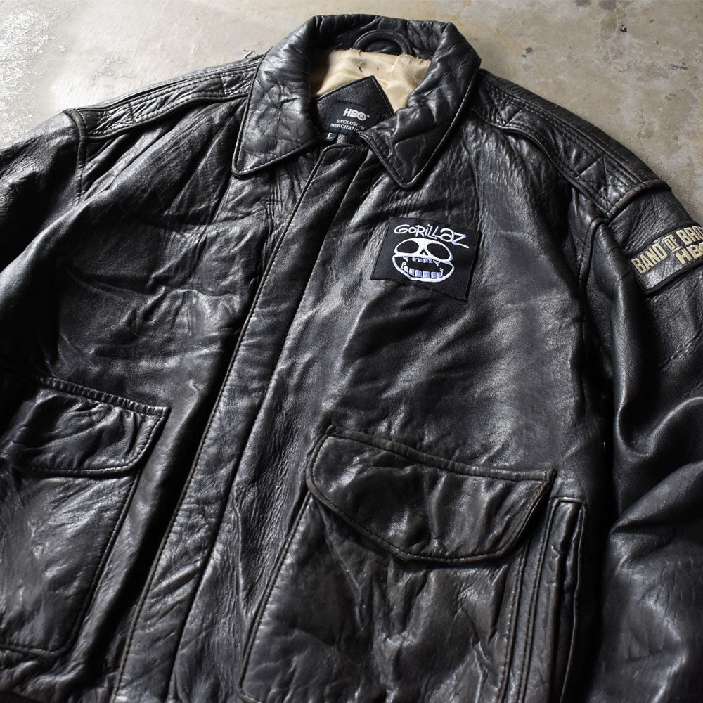 Y2K HBO “BAND OF BROTHERS” レザー フライトジャケット GORILLAZパッチ 251014H