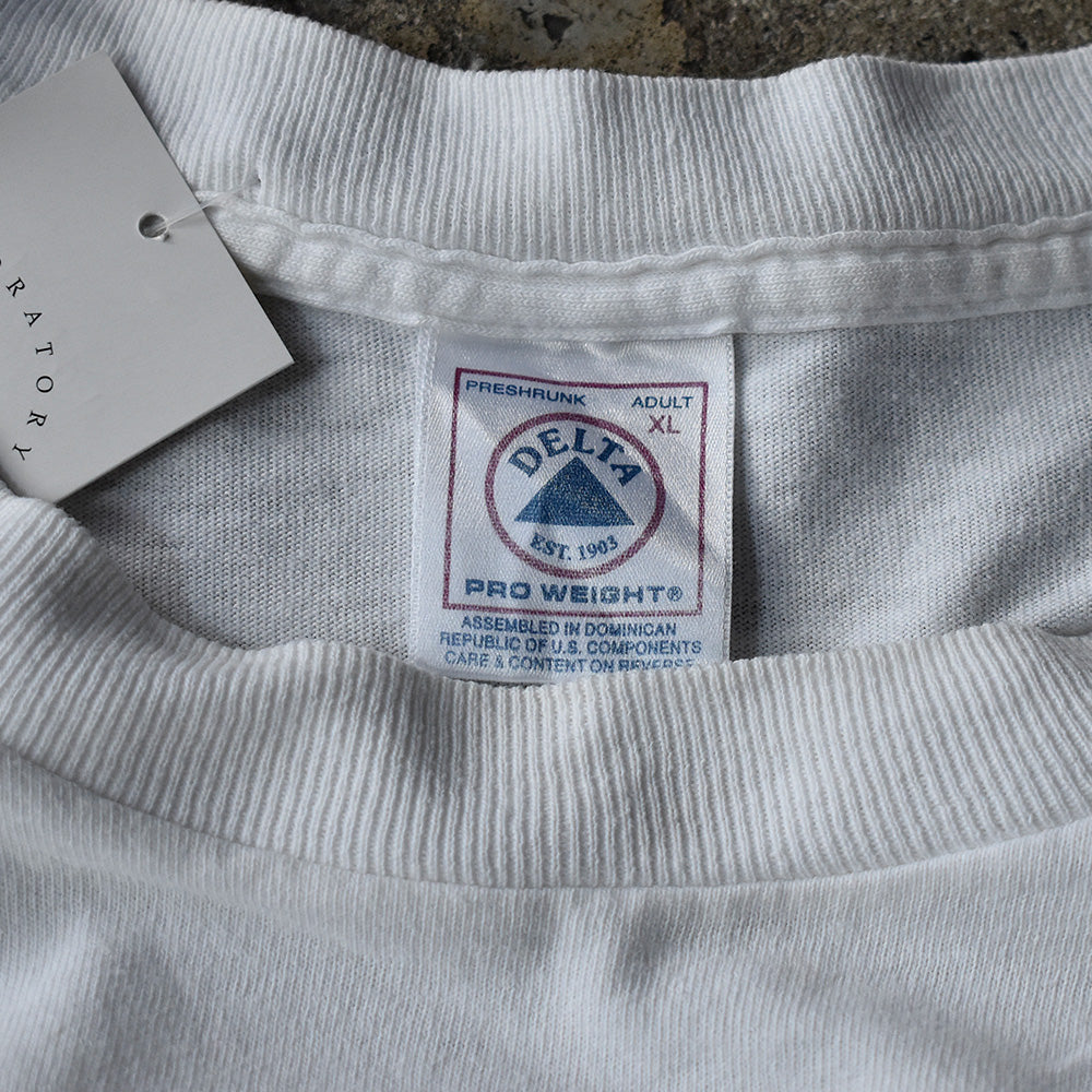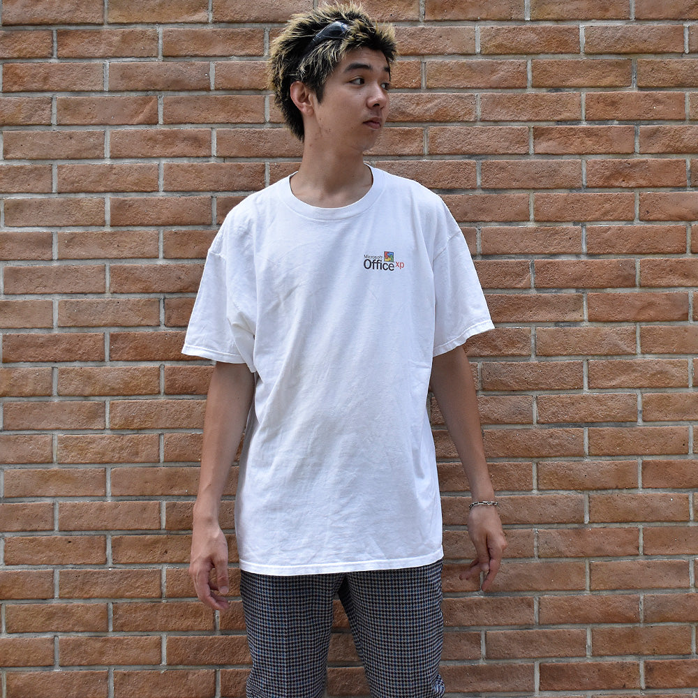 note...00年代初頭にリリースされた“Microsoft Office XP“プロモーションTシャツ。フロント胸元にロゴ。バックにはキャッチコピー “working smarter just got easier”がプリントされたシンプルかつ印象的な1枚。タグはデルタのXL表記。ストリートでも高い人気を誇るテック・ITカルチャー、企業Tシャツです。