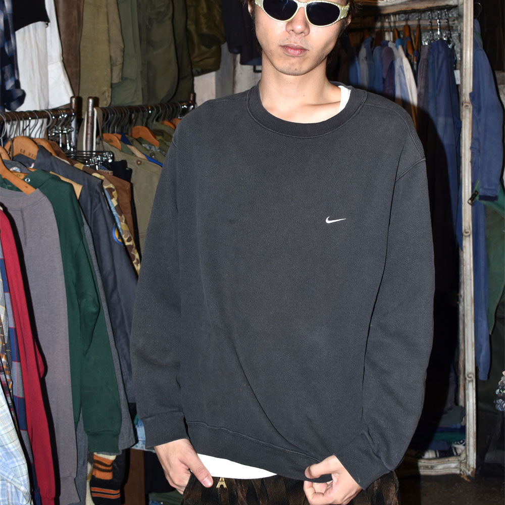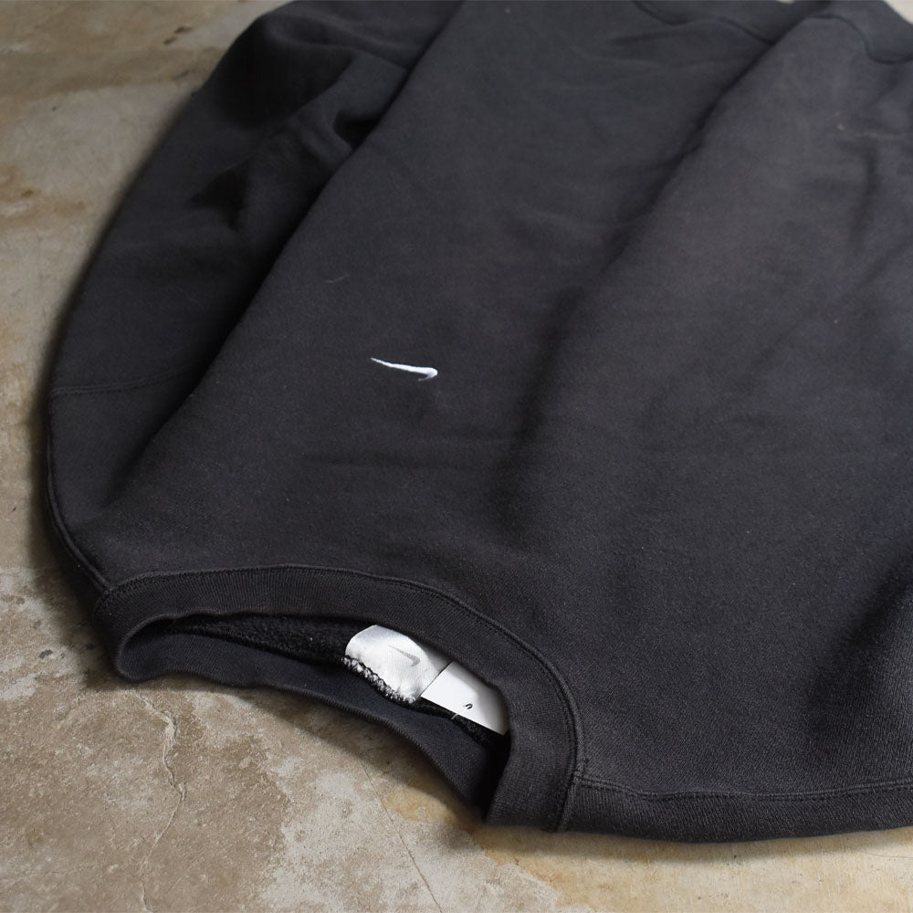 シンプルなブラックボディに胸元のスウッシュだけを配した、2000年代初頭のUSA製ナイキ・スウェット。