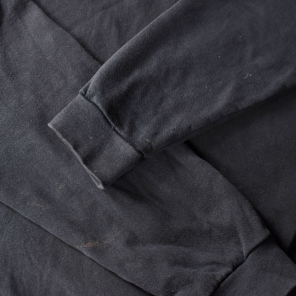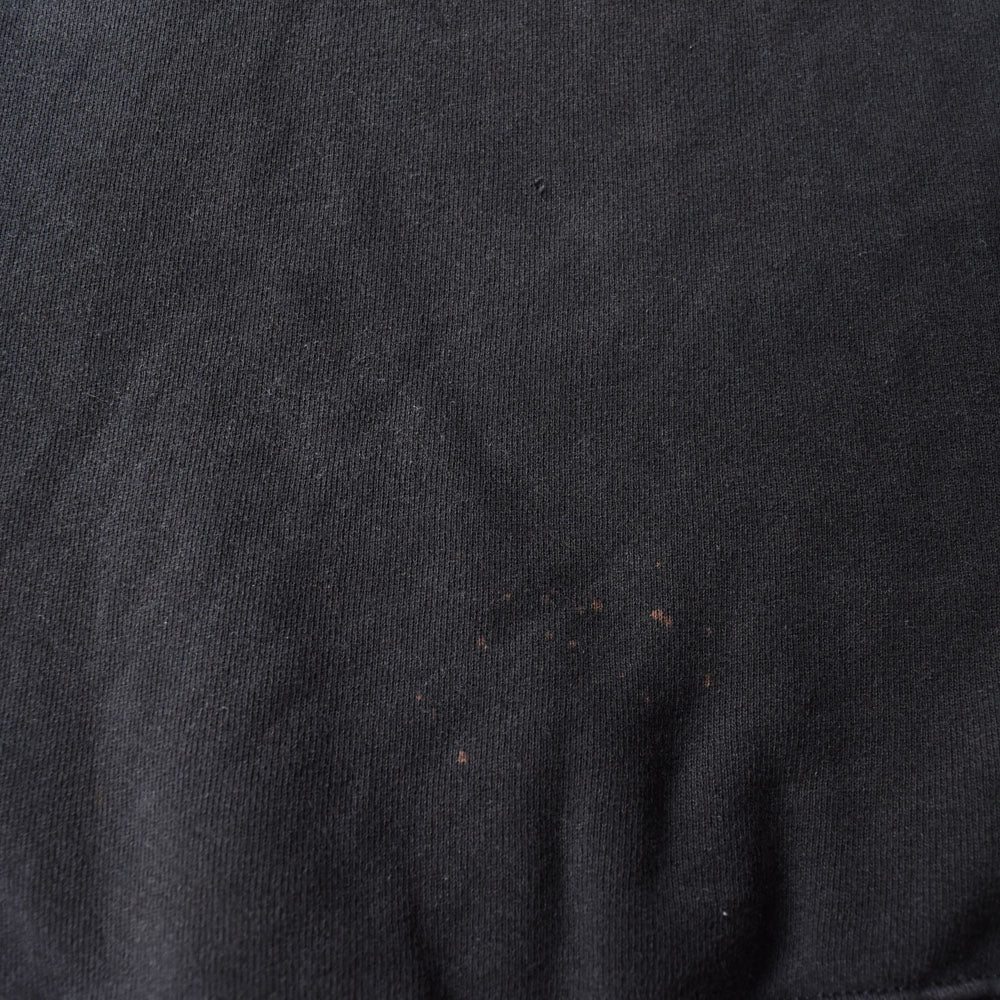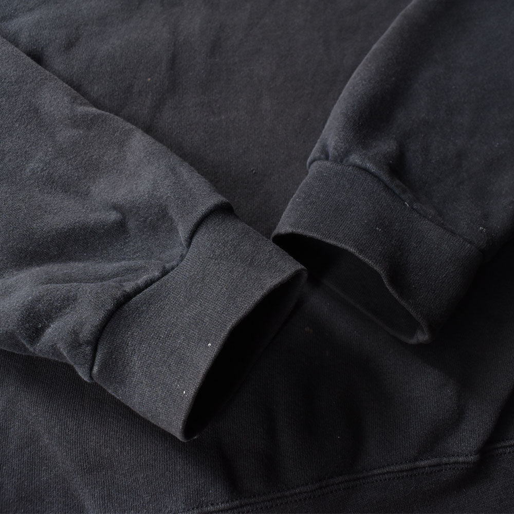 着込みを重ねて柔らかく馴染んだコットンの質感は、古着ならではの奥行きをまとい、黒のトーンに表情を生み出しています。スポーツウェアの枠を超えて、ストリートやモードにもしっくりと馴染む万能な存在。