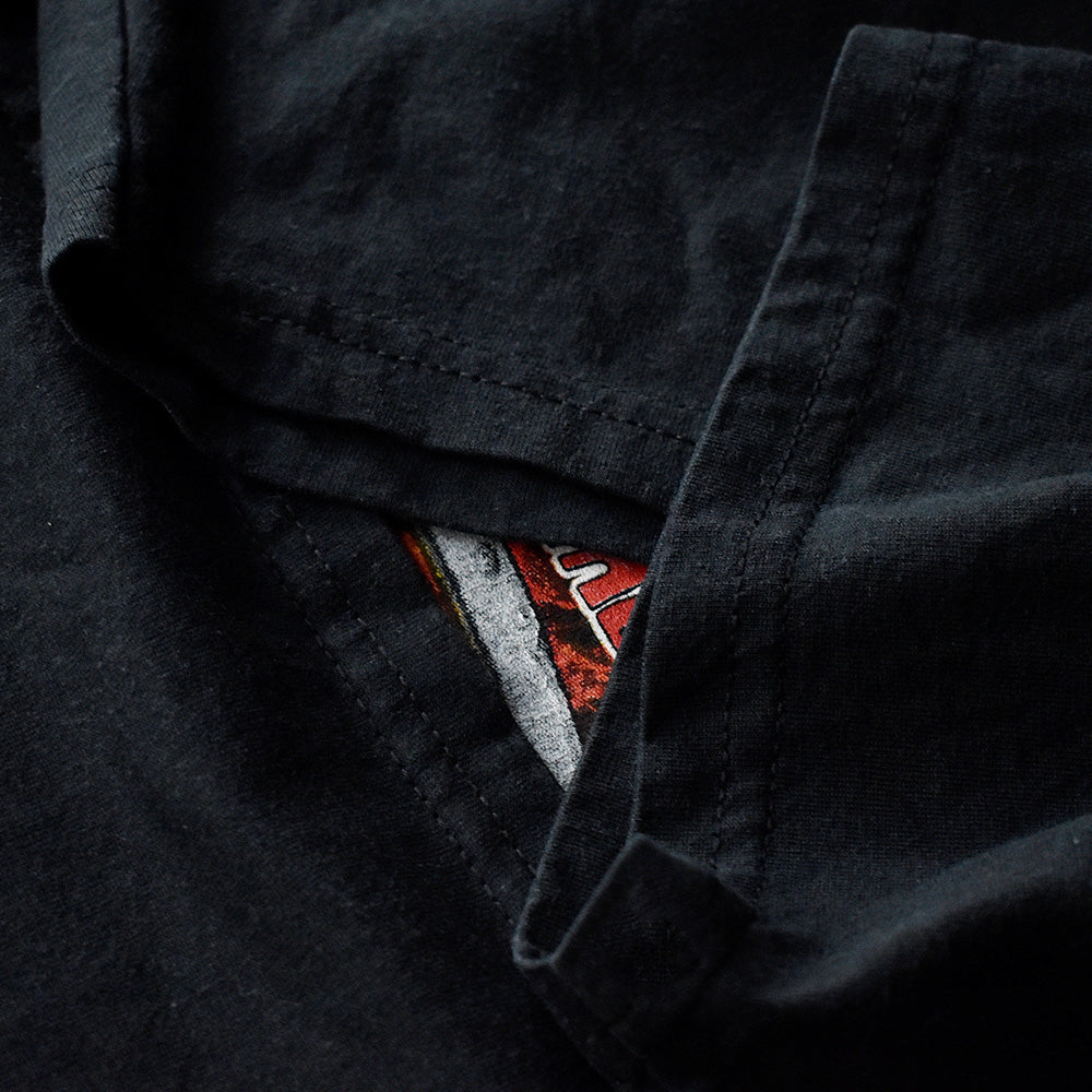 note...USヘヴィメタルバンド、パンテラ。01年に行われた“REAL STEEL TOUR 2001” Tシャツ。ゲストにSoulfly/Morbid Angel/Nothingfaceを迎えた豪華なツアー。フロントにはパンテラらしい重厚かつ攻撃的なグラフィック。バックはスカルとツアー開催地がプリントされています。タグはJERZEESのXL表記。メタルファン必見の1枚です。