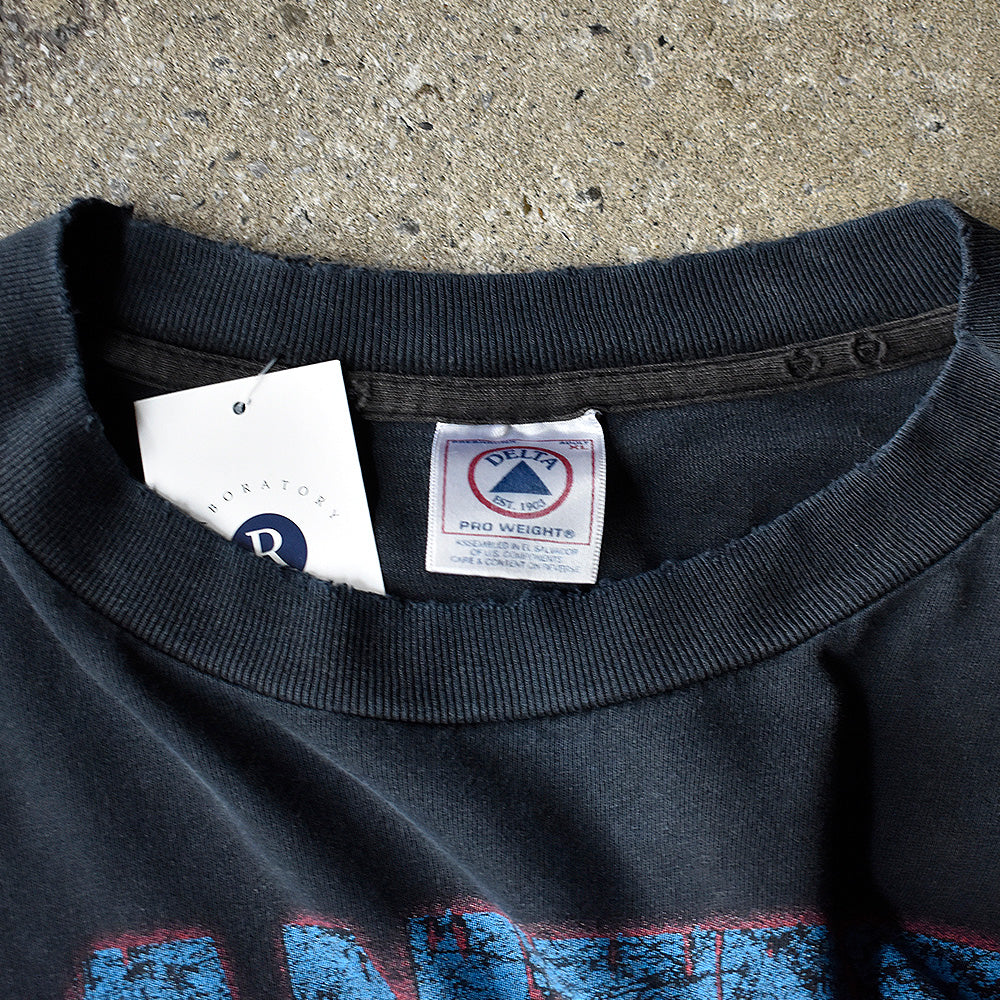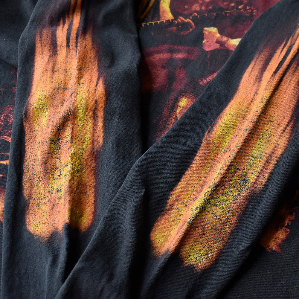 note...USヘヴィメタルバンド、パンテラ。00年リリースアルバム“Reinventing The Steel”をモチーフとした、ファイヤーデザインロングスリーブTシャツ!フロント、両袖に燃え上がるファイヤープリントが圧巻の1枚。01年コピーライト入り。タグはデルタのXL表記。玉数も少ない希少なパンテラロングスリーブTシャツです。