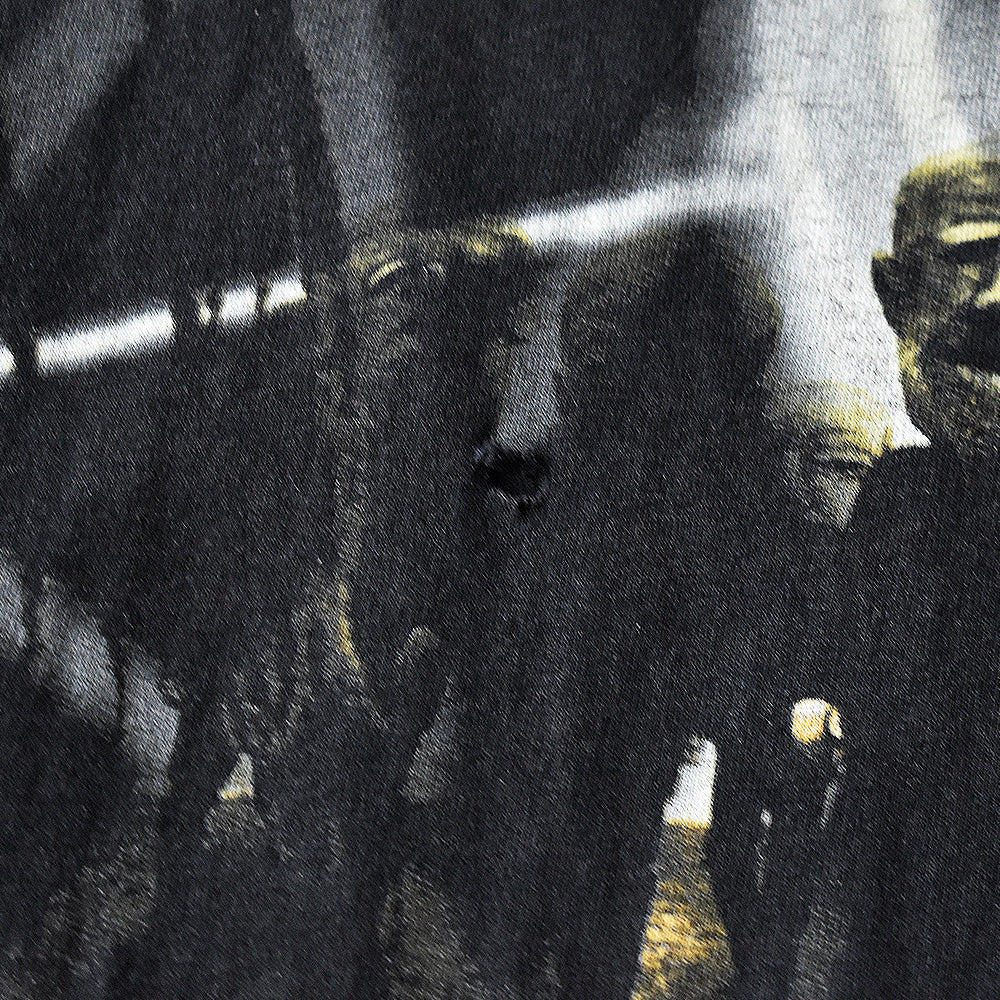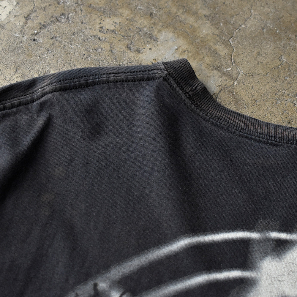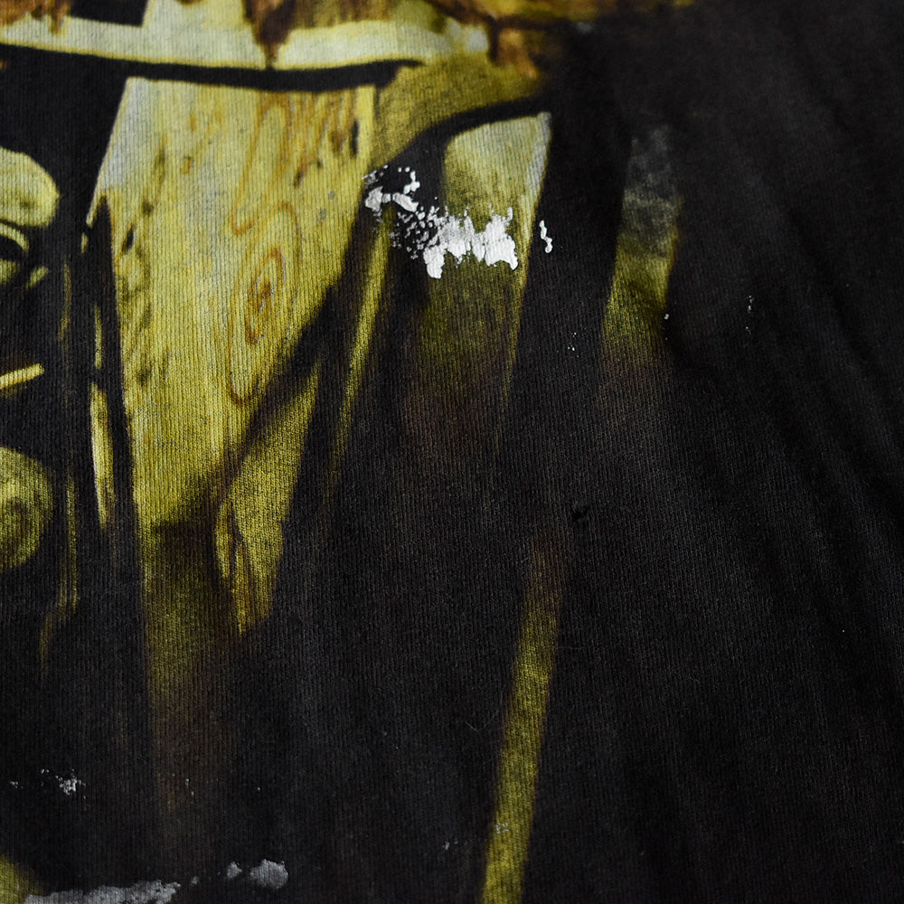 note...USヘヴィメタル界の象徴的存在、スリップノット。08年リリース “All Hope Is Gone“ Tシャツ。フロントにダークで不穏な空気感漂うグラフィック。バックにはスリップノットを象徴するロゴプリント。薄っすらと残るコピーライト入り。また、両袖は大胆にカットオフされていますが、レイヤードスタイルもキマる1枚。国内外で支持され続けるスリップノット。お早めにどうぞ。