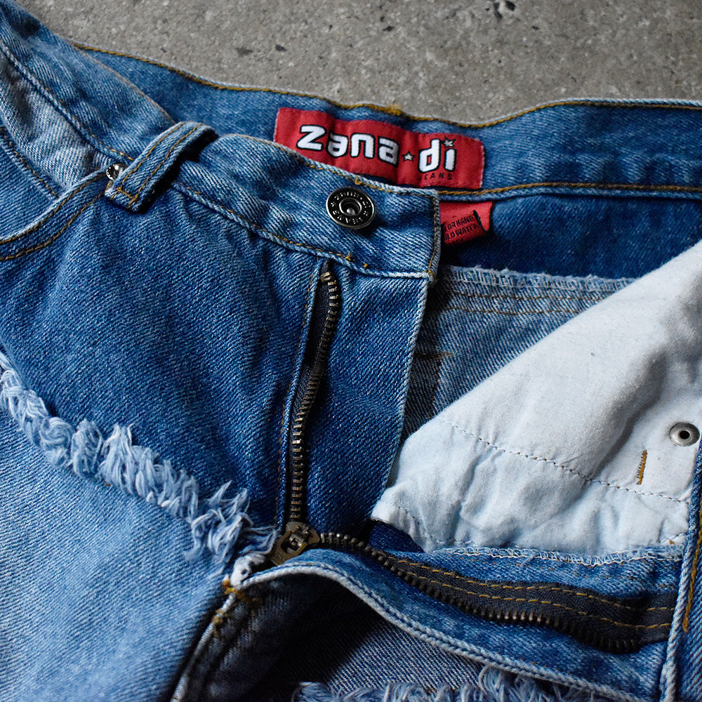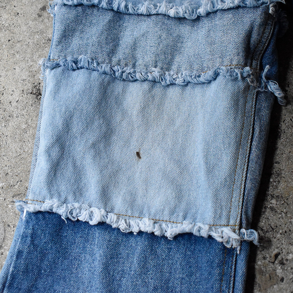 note...ツギハギ、パッチワークアイテムを多く展開するZana Di製、フレアデニムパンツ。どこかヒステリックグラマーのような雰囲気が最高にクールな一本。サイズはレディース9表記。実寸29×31位。メンズも着用可能なサイズ感。タイトなトップスとも相性抜群です。