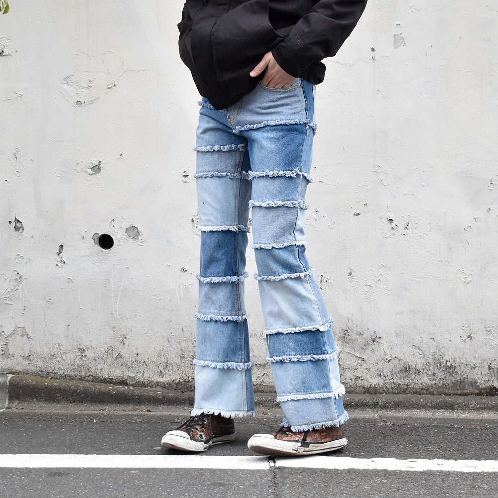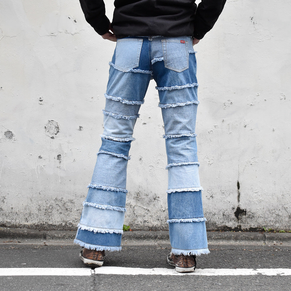 Y2K Zana Di ツギハギ パッチワーク フレアデニムパンツ 250311H