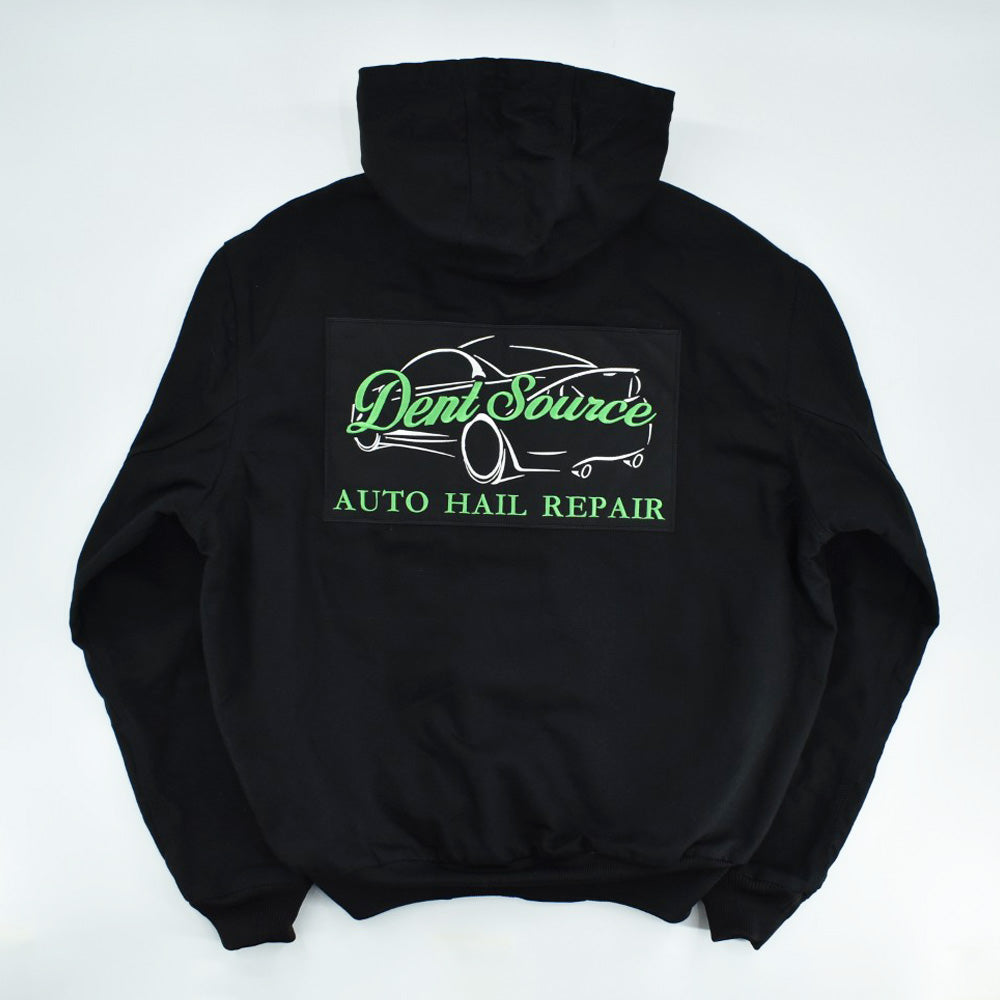 背中には Dent Source Auto Hail Repair のグラフィック。